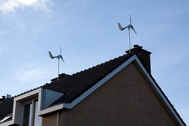 Vertikale Windkraftanlagen können fest oder richtungsdrehend angeordnet werden und sind unter bestimmten Voraussetzungen im Garten, am oder auf dem Haus monierbar.